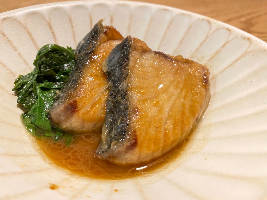 春菊のシャキシャキとした歯応えと、しっとりふっくらなブリにポン酢バターが良く合います。