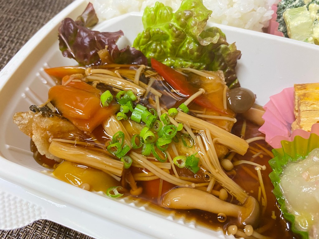 無添加調味料、庄内直送減農薬米を使用した手作りのお弁当をご用意しています!お魚は豊洲市場から直送お魚を使用しています。クセがなくふっくら柔らかいお魚は鮮度のいいしるしですね。