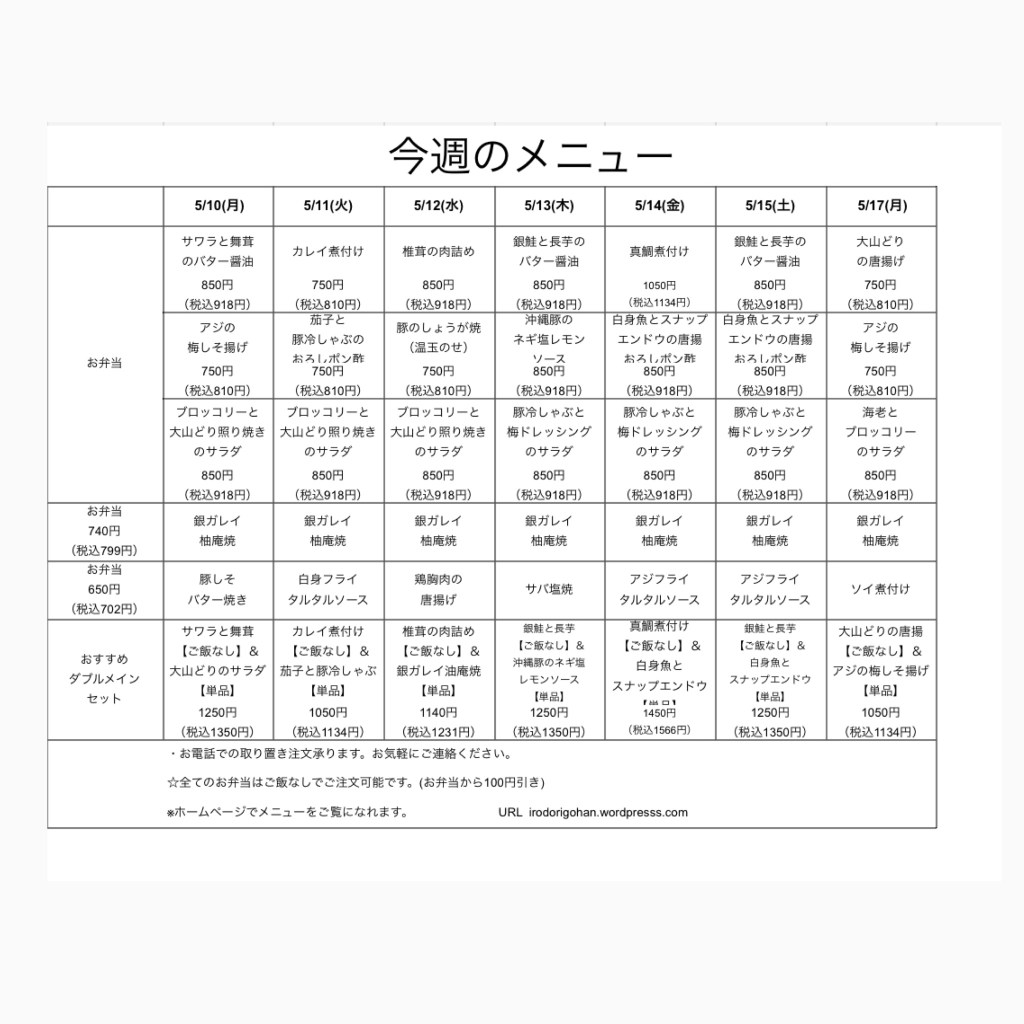 お弁当は日替わりです。毎日5種類のお弁当をご用意しています。また、メインを2種類お選びいただけるダブルメインセットも人気です。