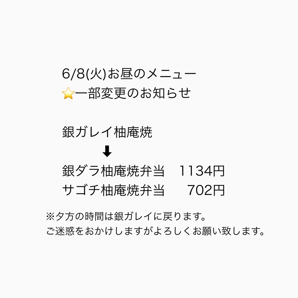 ⭐️6/8(火)のお昼のメニューを一部変更させて頂きます。