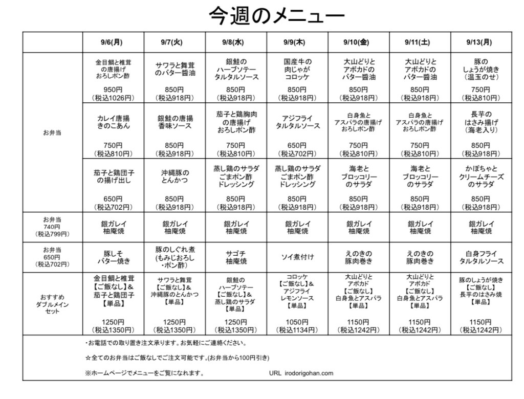 今週のメニュー表をご覧になり、インターネットまたはお電話にてご注文下さい。