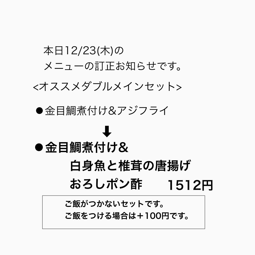 12/23(木)のメニューの訂正です!