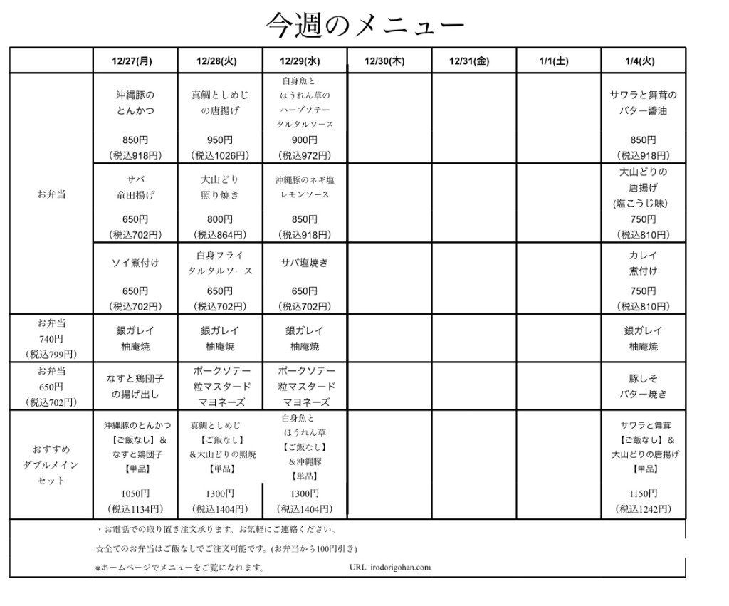 今週のメニュー表をご覧になり、インターネットまたはお電話にてご注文下さい。
