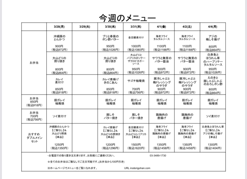 今週のメニュー表をご覧になり、インターネットまたはお電話にてご注文下さい。