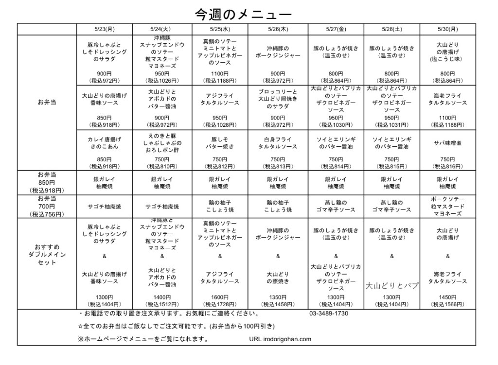 今週のメニュー表をご覧になり、インターネットまたはお電話にてご注文下さい。