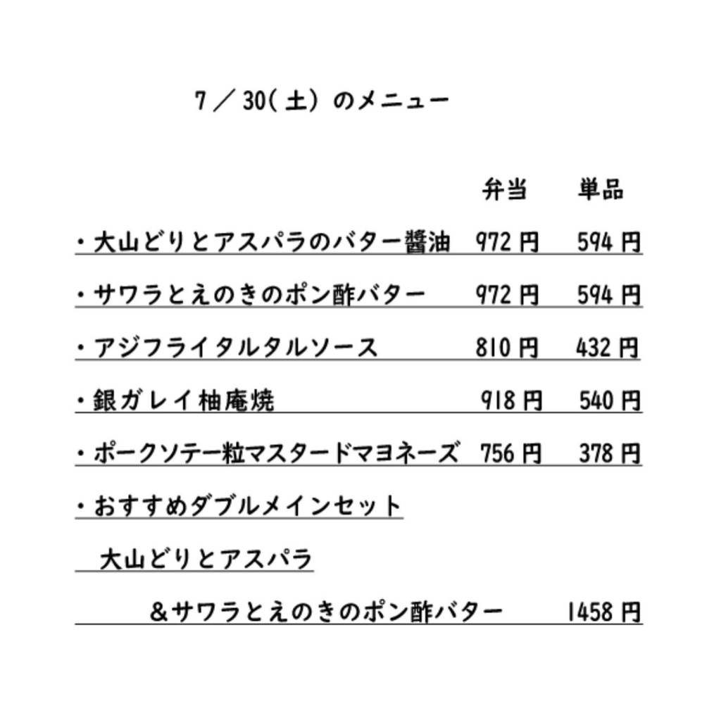 無添加調味料、庄内直送減農薬米を使用した手作りのお弁当をご用意しています!お魚は豊洲市場から直送お魚を使用しています。クセがなくふっくら柔らかいお魚は鮮度のいいしるしですね。