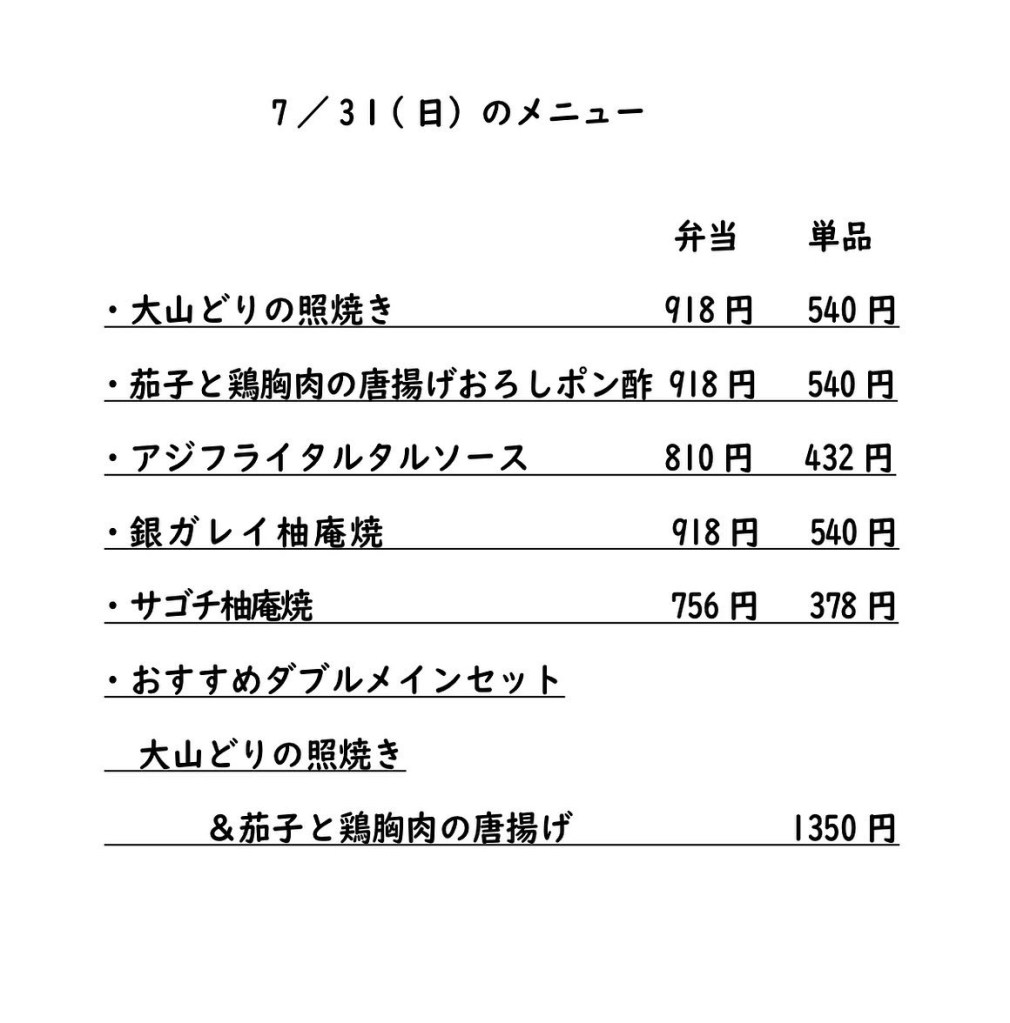 無添加調味料、庄内直送減農薬米を使用した手作りのお弁当をご用意しています!お魚は豊洲市場から直送お魚を使用しています。クセがなくふっくら柔らかいお魚は鮮度のいいしるしですね。
