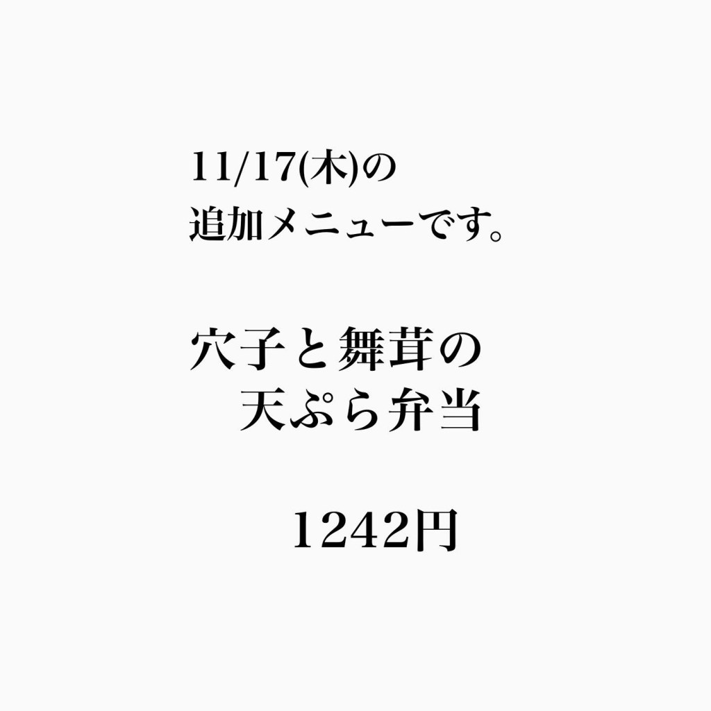 本日11/17(木)のメニューに一部変更がございます。