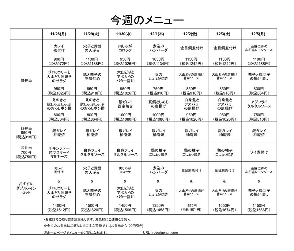 今週のメニュー表をご覧になり、インターネットまたはお電話にてご注文下さい。