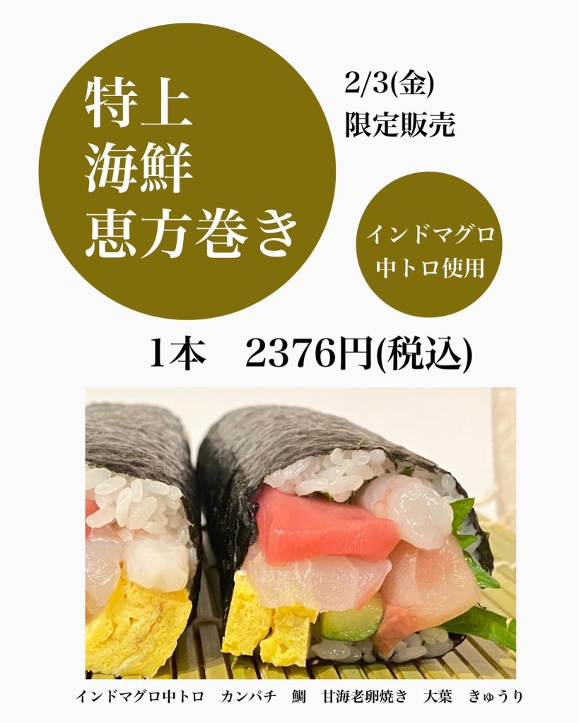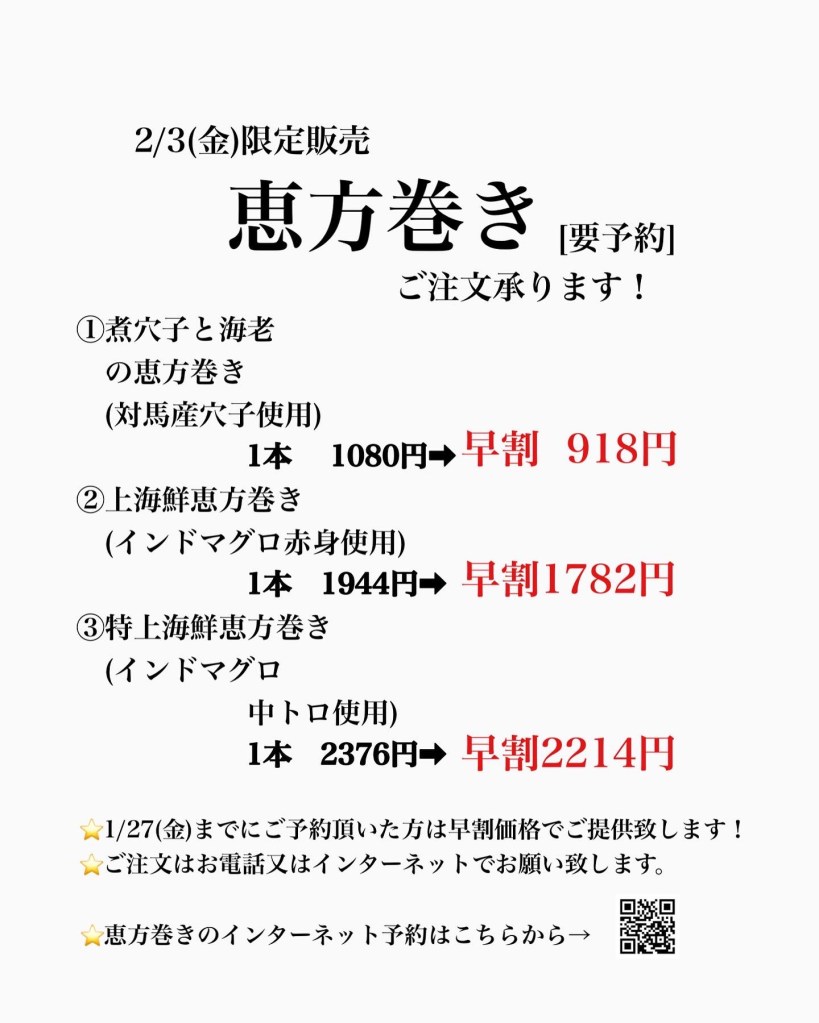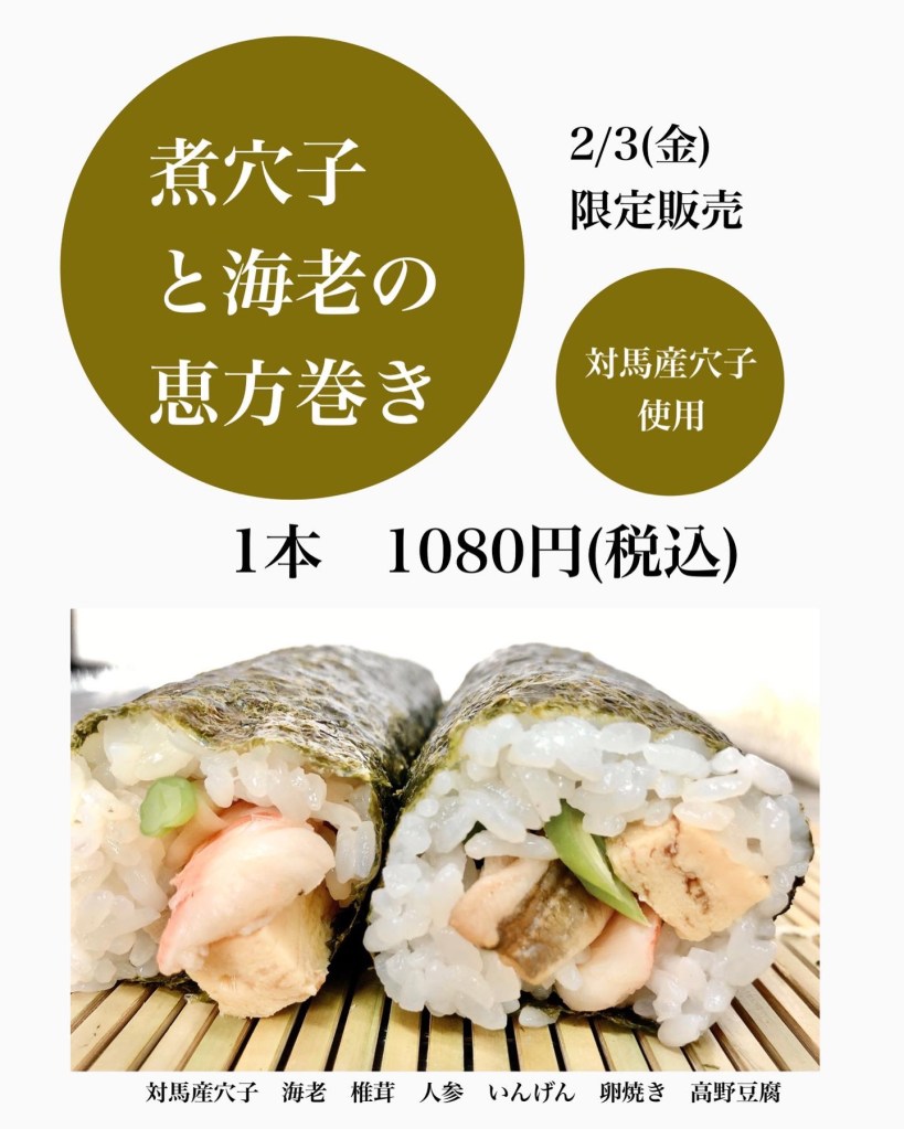 ⭐️恵方巻きのご予約承ります!インターネットでのご予約はこちらから(普段のお弁当のオンライン予約とは別になってます。)👇https://reserva.be/irodorigohan3