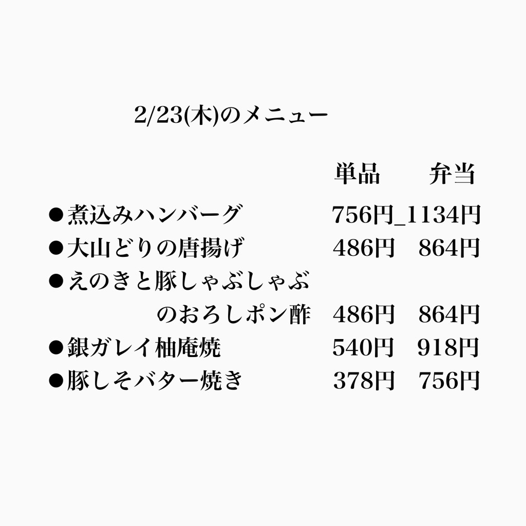 ⭐️本日2/23(木)は営業致します。(19:00までの営業とさせて頂きます。)ご注文お待ちしています!