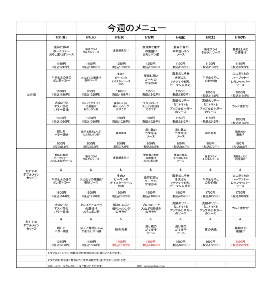 今週のメニュー表をご覧になり、インターネットまたはお電話にてご注文下さい。