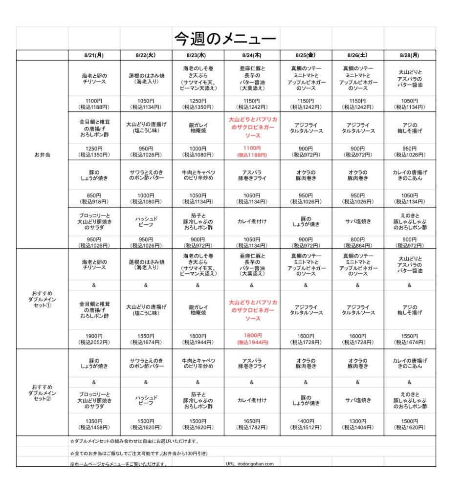 今週のメニュー表をご覧になり、インターネットまたはお電話にてご注文下さい。