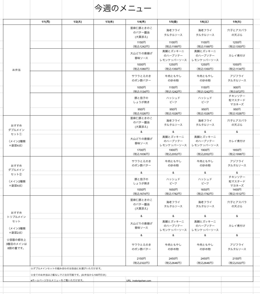 今週のメニュー表をご覧になり、インターネットまたはお電話にてご注文下さい。