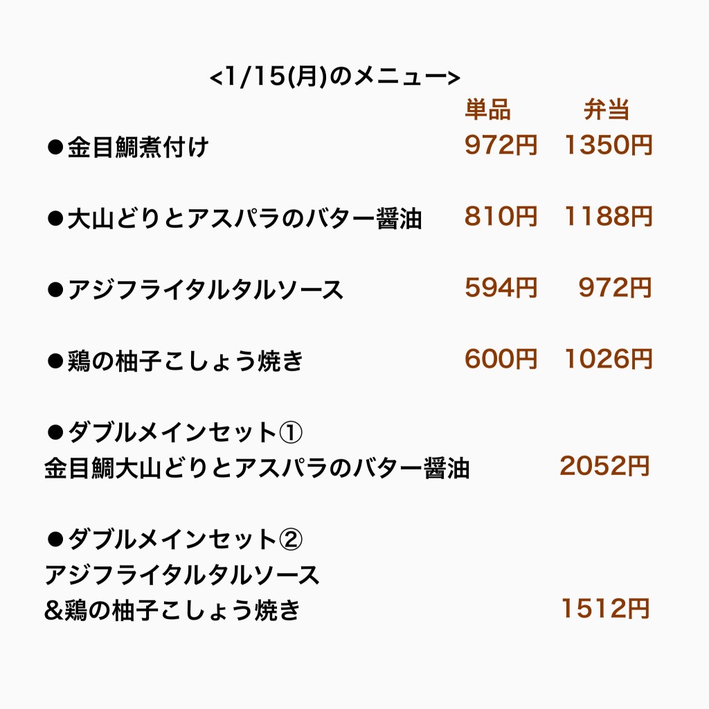 お弁当は日替わりです。毎日5種類のお弁当をご用意しています。また、メインを2種類お選びいただけるダブルメインセットも人気です。