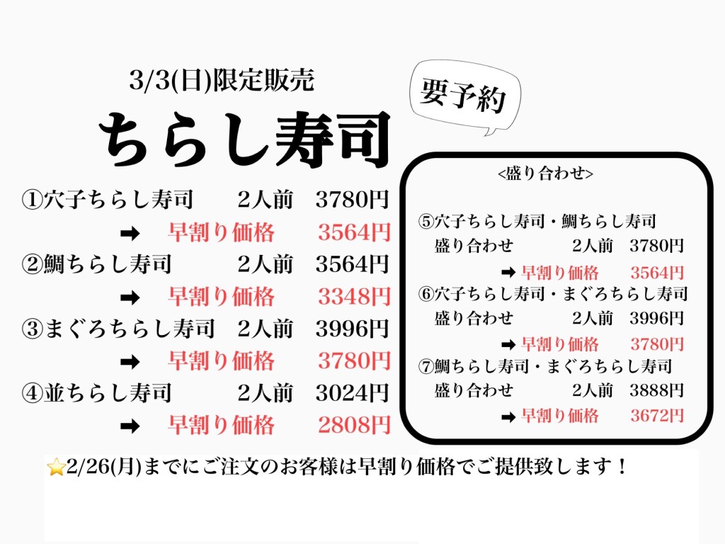 また、2/26(月)までにご注文のお客様は早割り価格でご提供致します。