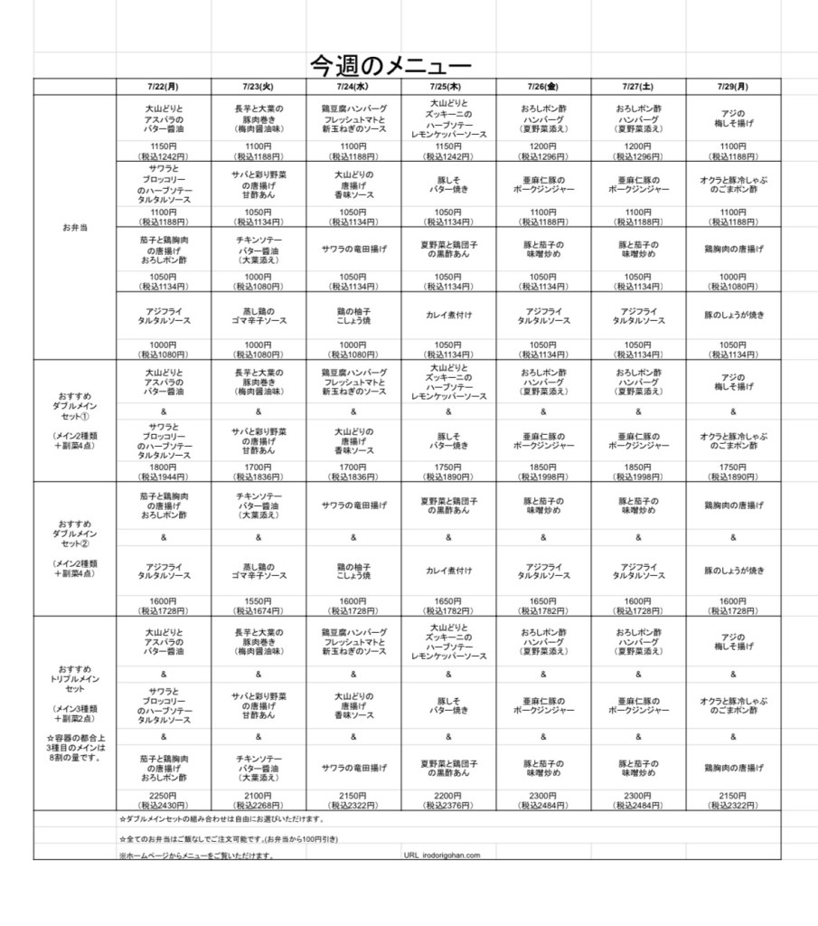 今週のメニューです!