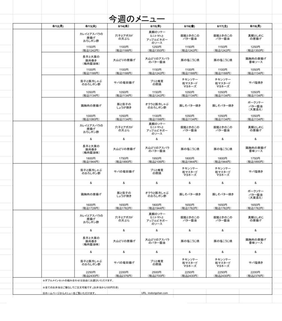 今週のメニュー表をご覧になり、インターネットまたはお電話にてご注文下さい。