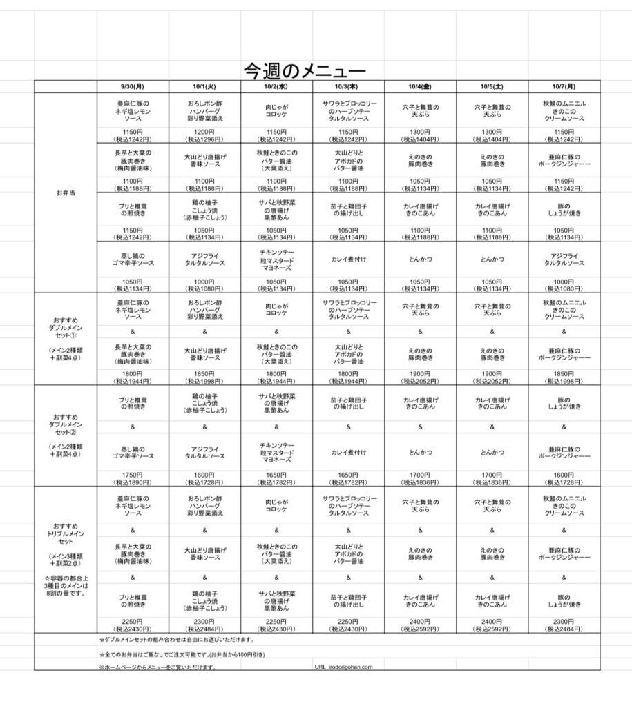今週のメニュー表をご覧になり、インターネットまたはお電話にてご注文下さい。
