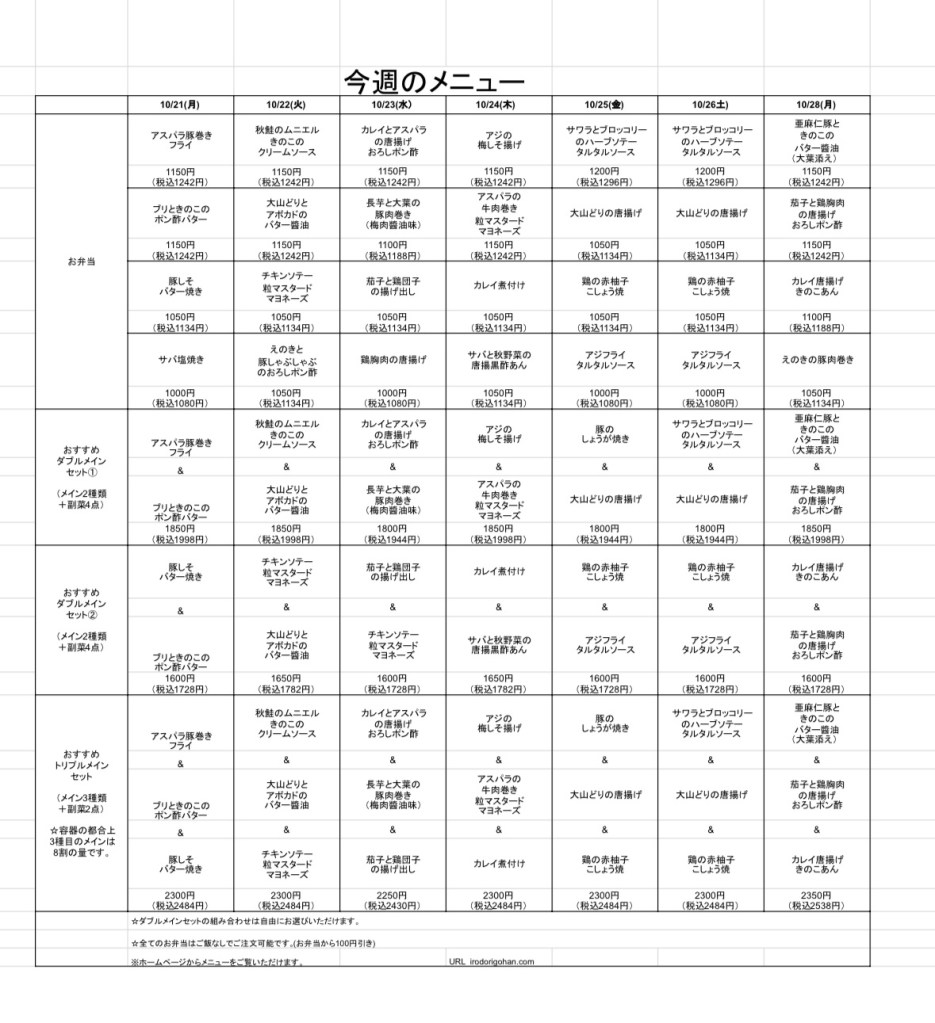 今週のメニュー表をご覧になり、インターネットまたはお電話にてご注文下さい。