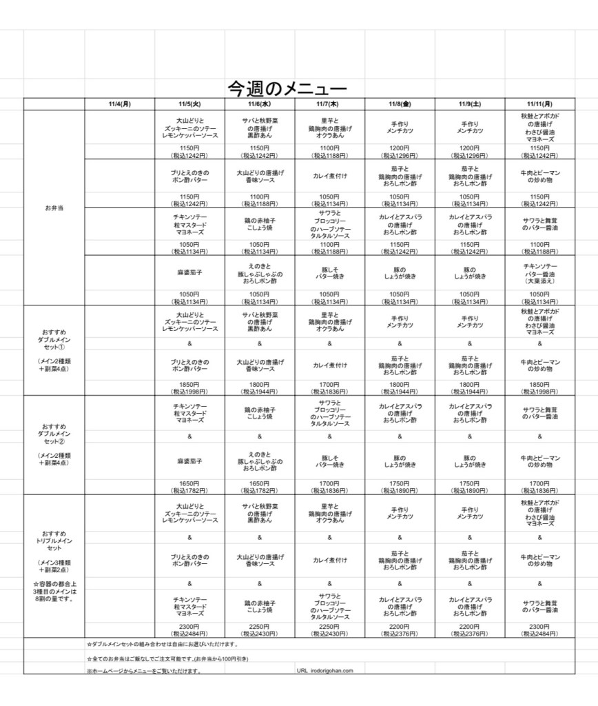 今週のメニューです!