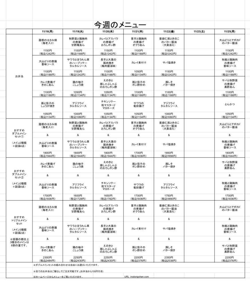 今週のメニュー表をご覧になり、インターネットまたはお電話にてご注文下さい。