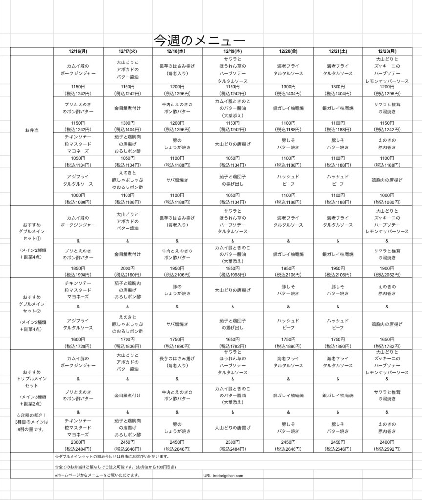 今週のメニュー表をご覧になり、インターネットまたはお電話にてご注文下さい。