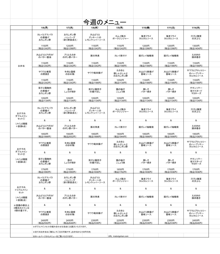 今週のメニュー表をご覧になり、インターネットまたはお電話にてご注文下さい。