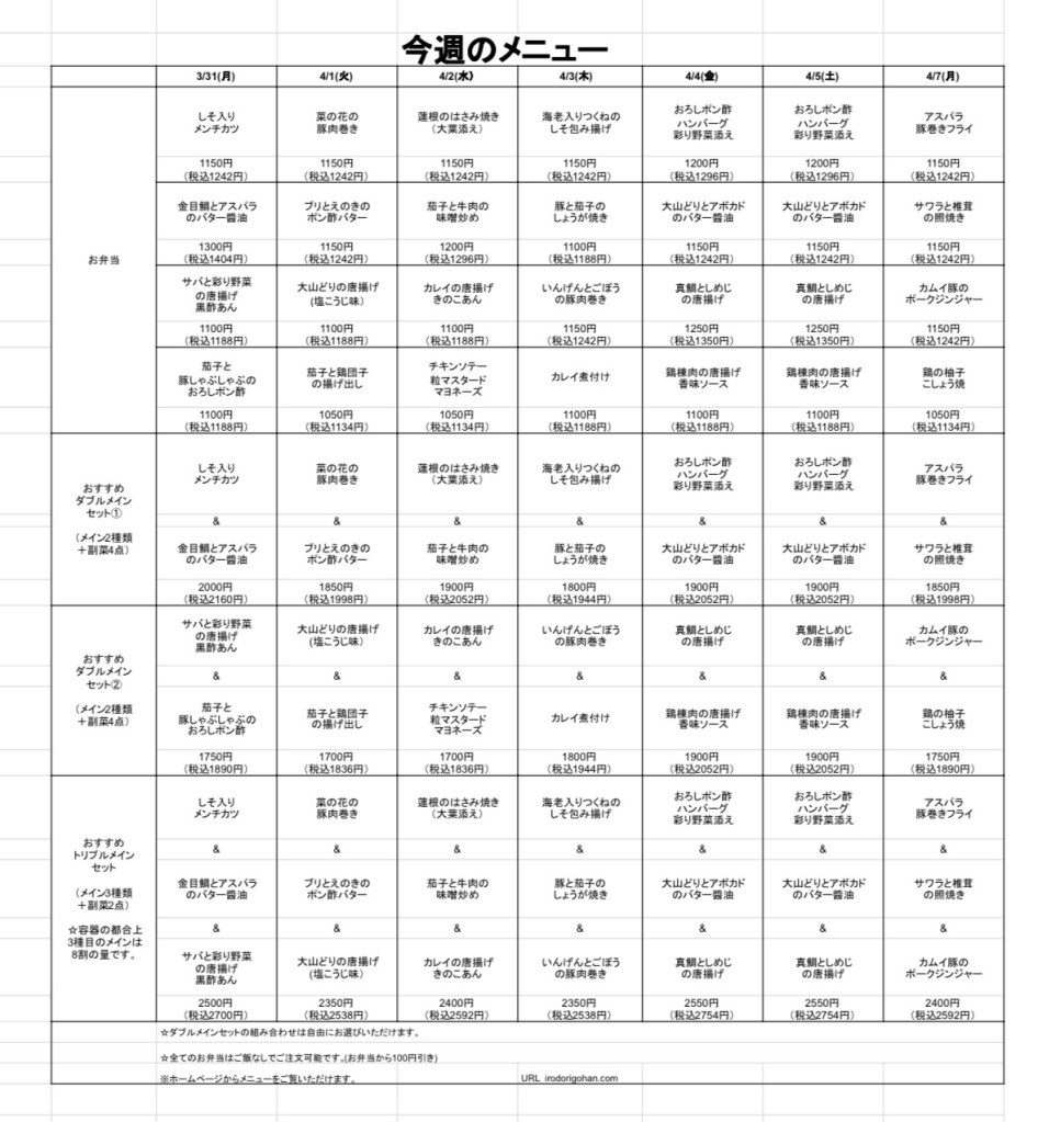 今週のメニュー表をご覧になり、インターネットまたはお電話にてご注文下さい。