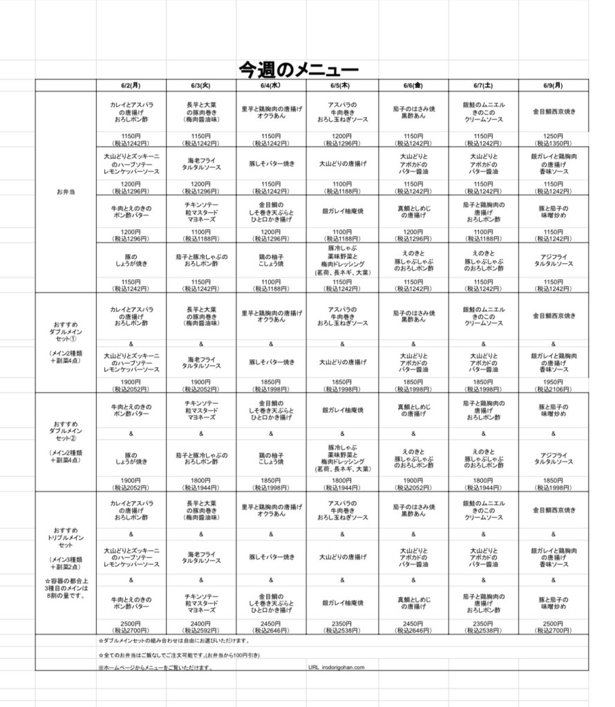 今週のメニュー表をご覧になり、インターネットまたはお電話にてご注文下さい。
