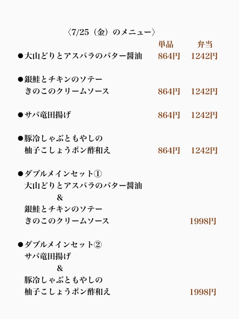 7/25(金)のメニューはこちら👇