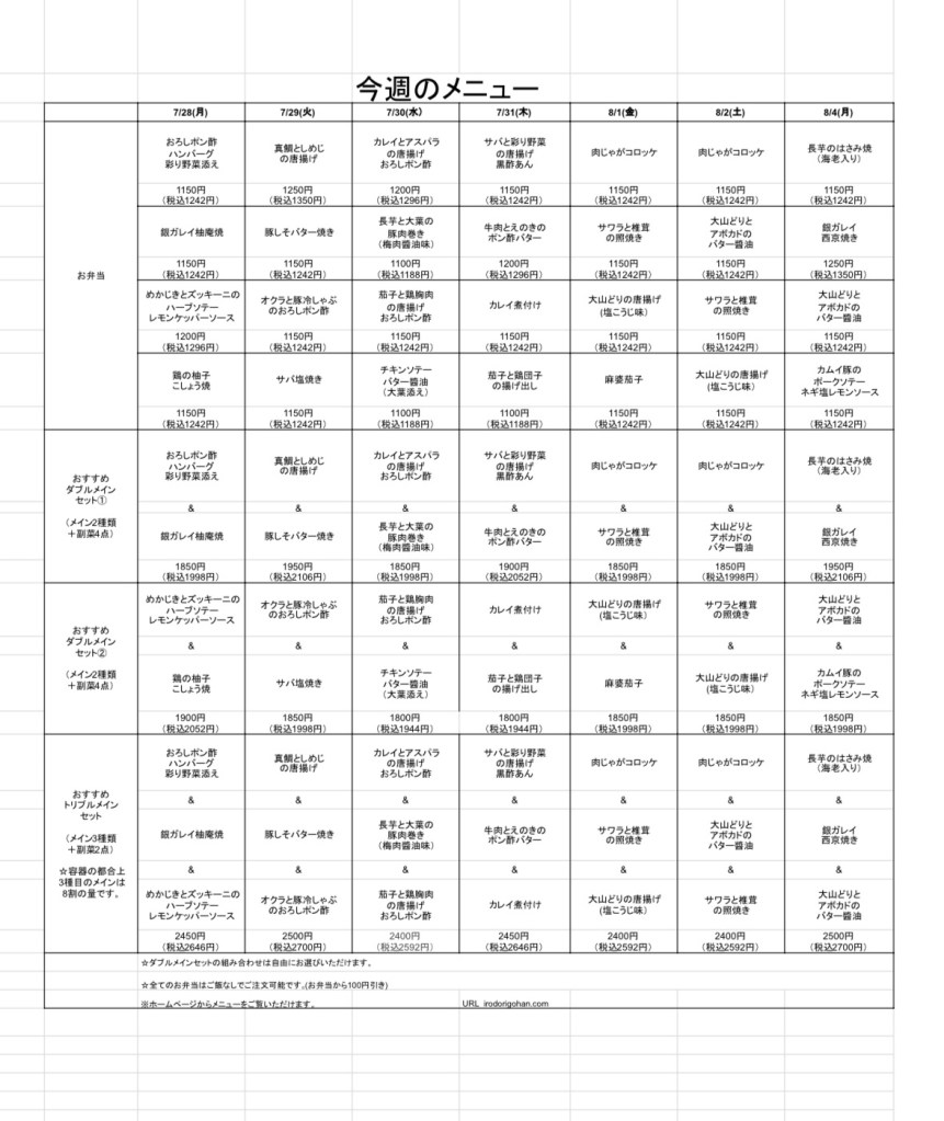 今週のメニュー表をご覧になり、インターネットまたはお電話にてご注文下さい。