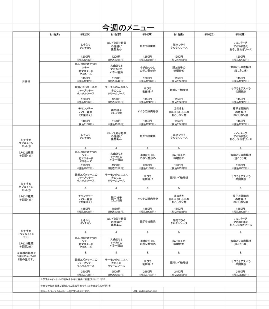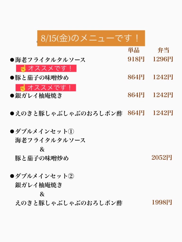 8/15(金)のメニューはこちら👇
