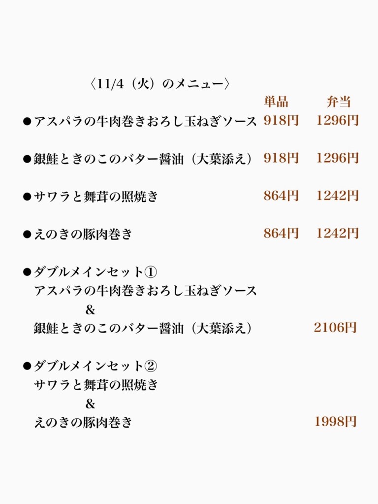 11/4(火)のメニューです!
