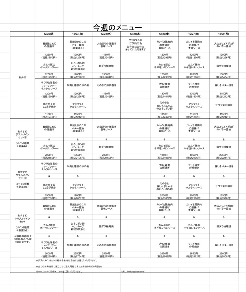 今週のメニュー表をご覧になり、インターネットまたはお電話にてご注文下さい。