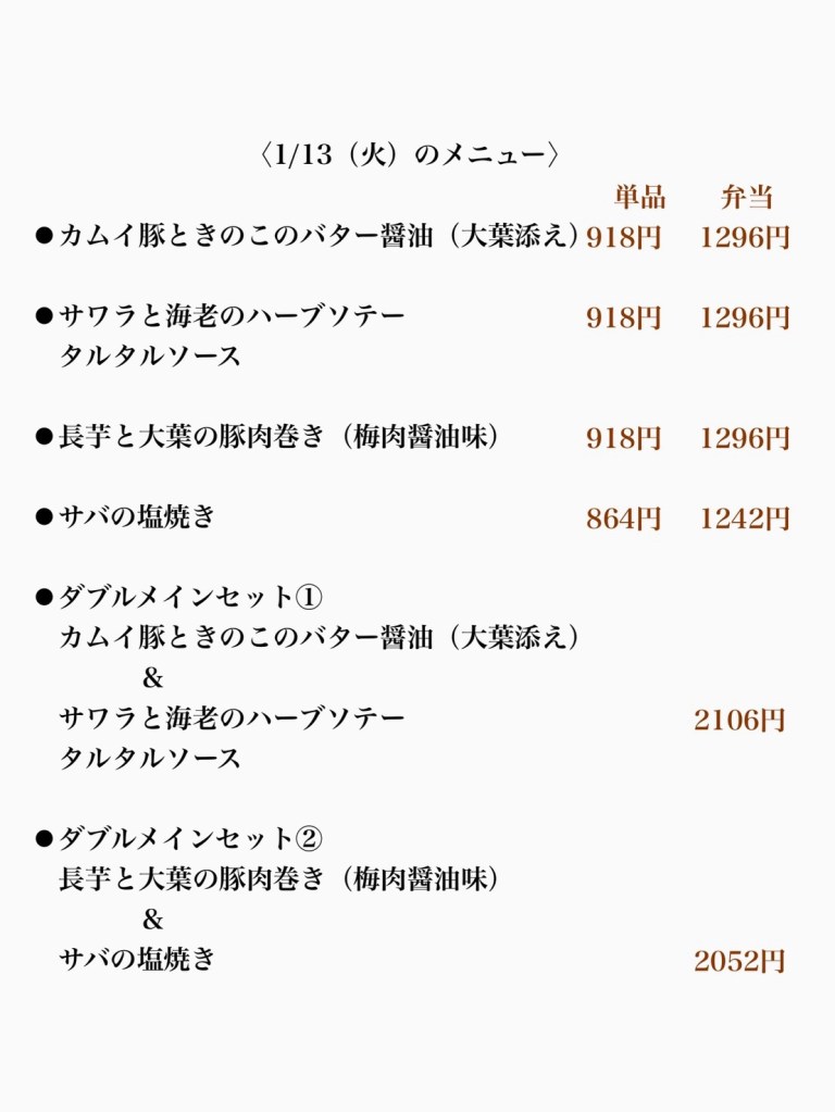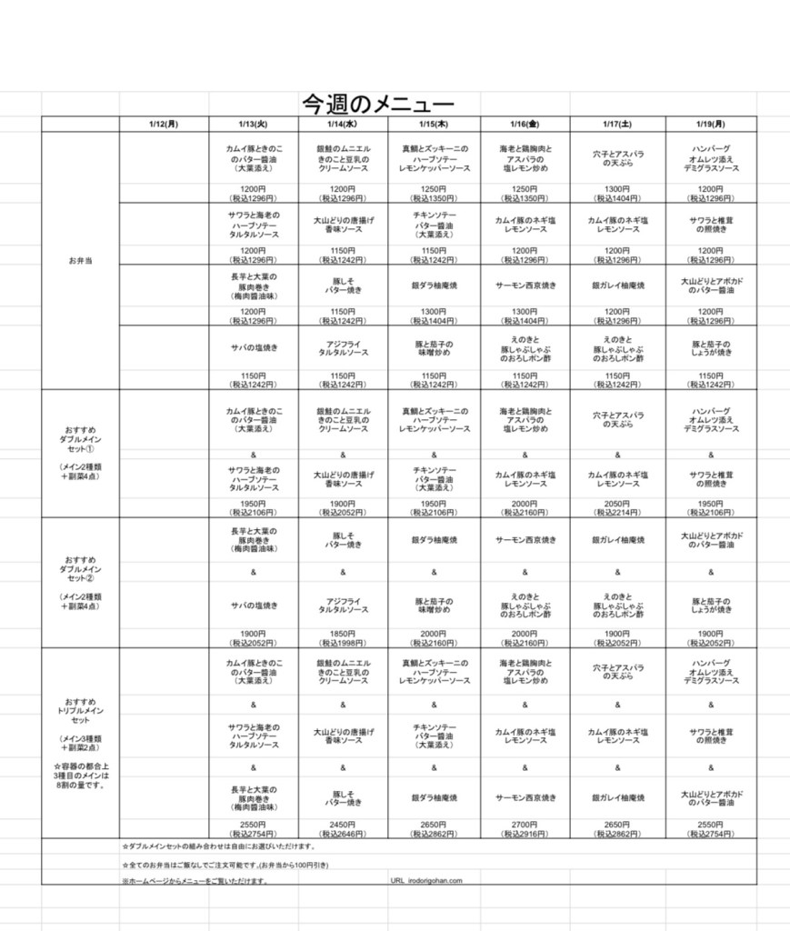 今週のメニュー表をご覧になり、インターネットまたはお電話にてご注文下さい。