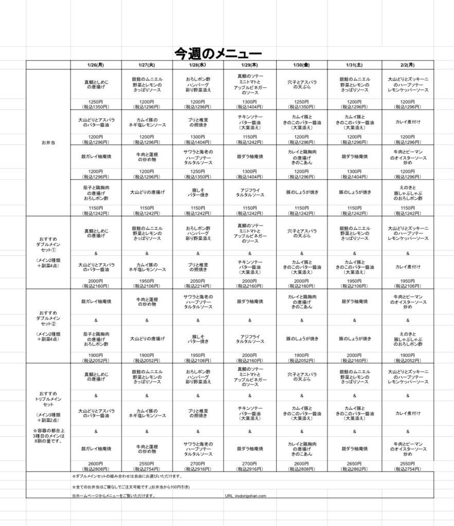 今週のメニュー表をご覧になり、インターネットまたはお電話にてご注文下さい。