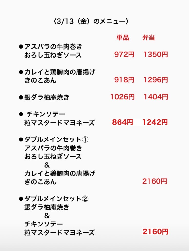 今週のメニュー表をご覧になり、インターネットまたはお電話にてご注文下さい。