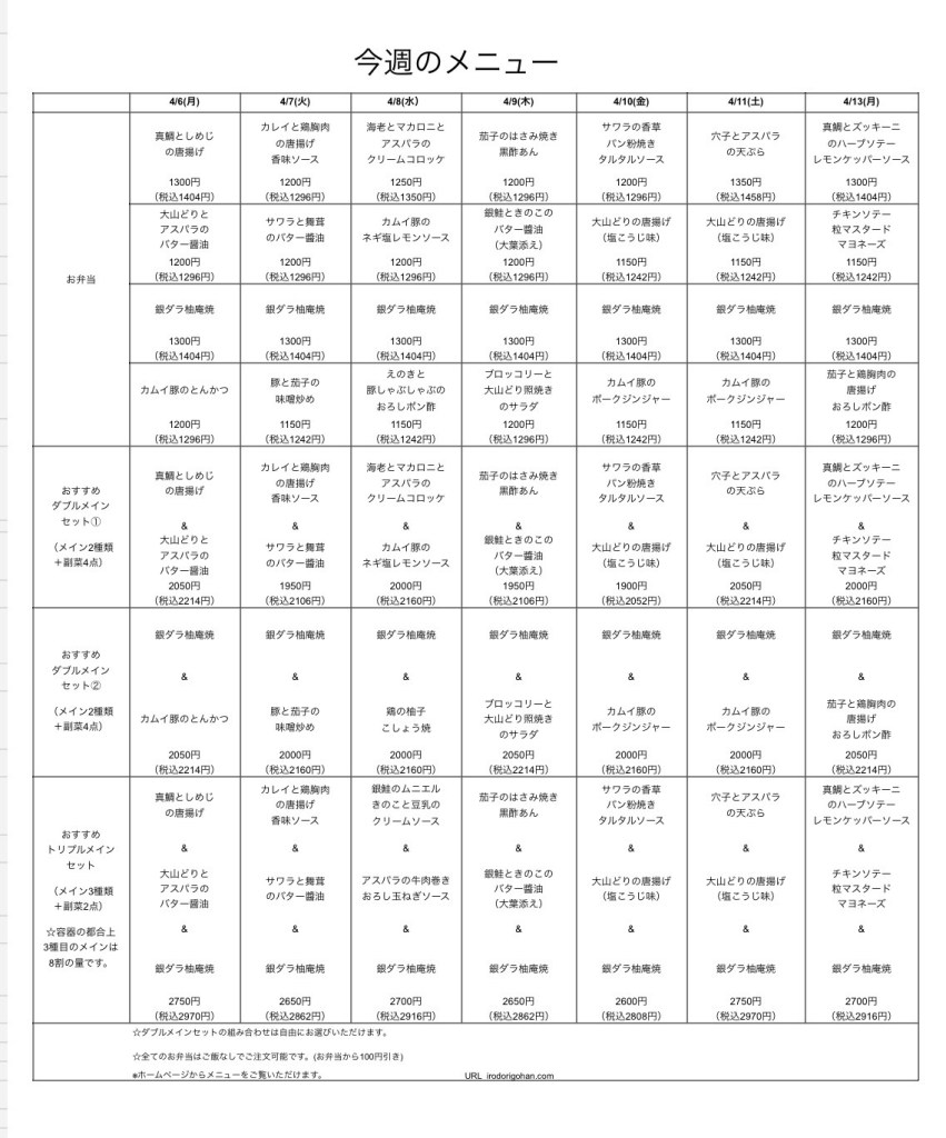 今週のメニュー表をご覧になり、インターネットまたはお電話にてご注文下さい。
