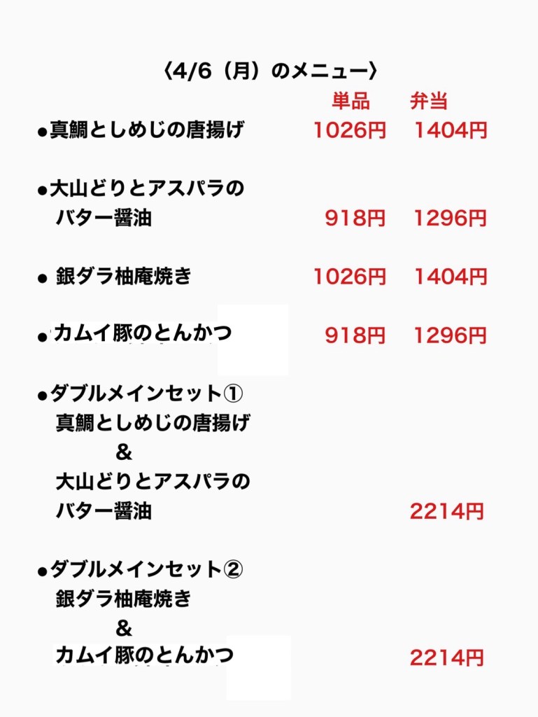 今週のメニュー表をご覧になり、インターネットまたはお電話にてご注文下さい。