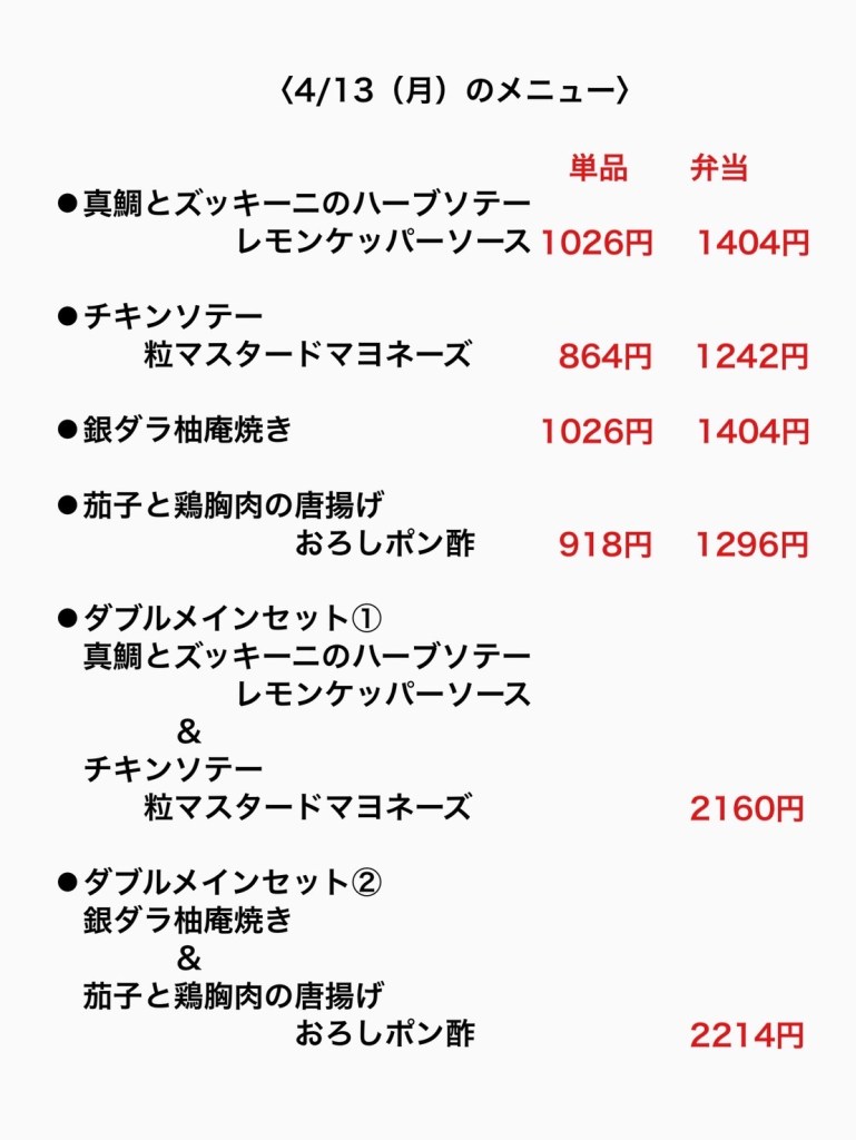 今週のメニュー表をご覧になり、インターネットまたはお電話にてご注文下さい。