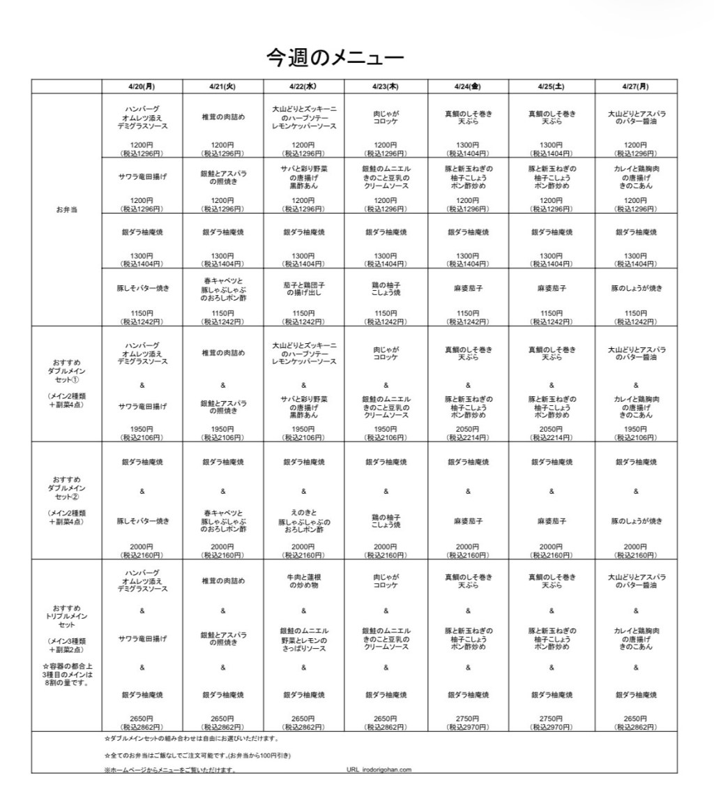 今週のメニュー表をご覧になり、インターネットまたはお電話にてご注文下さい。