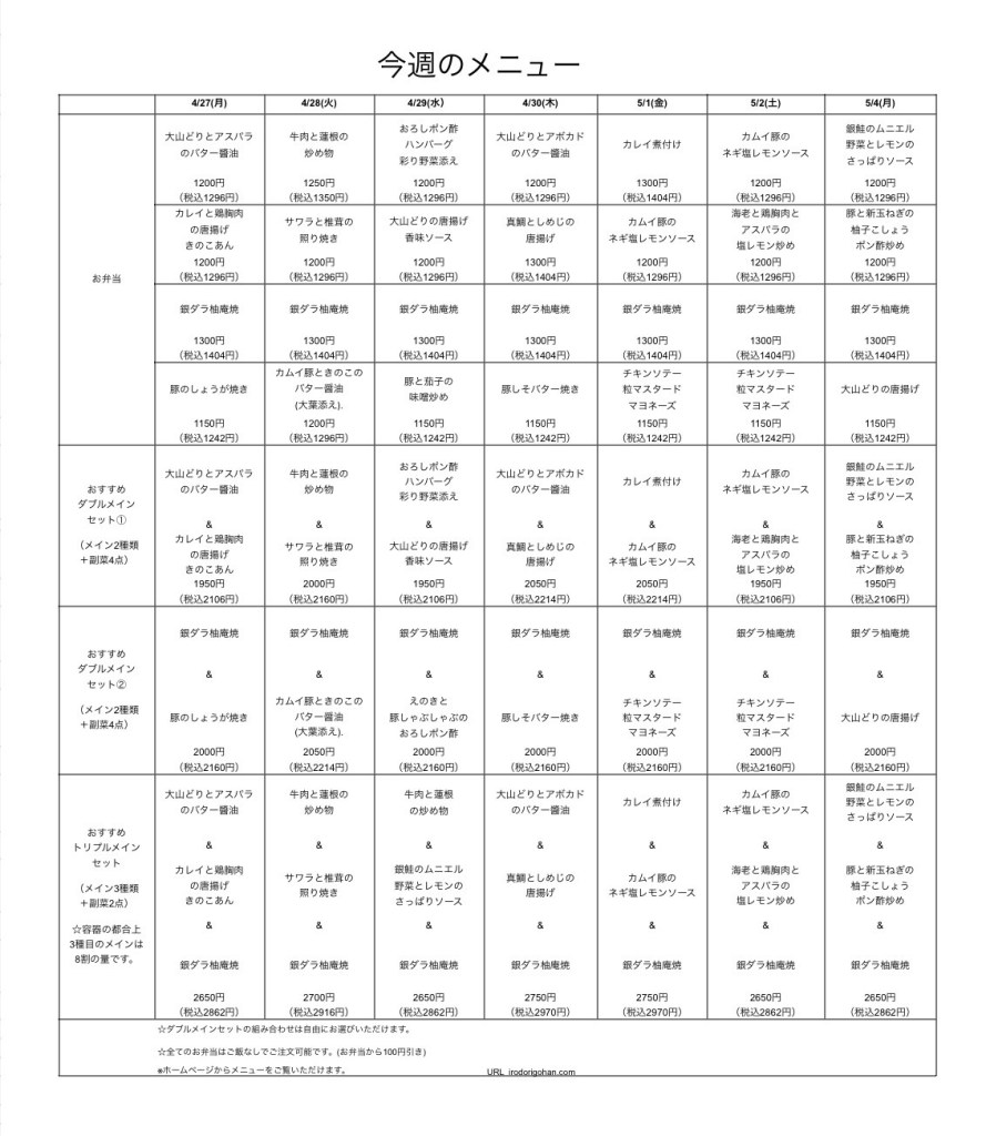 今週のメニュー表をご覧になり、インターネットまたはお電話にてご注文下さい。